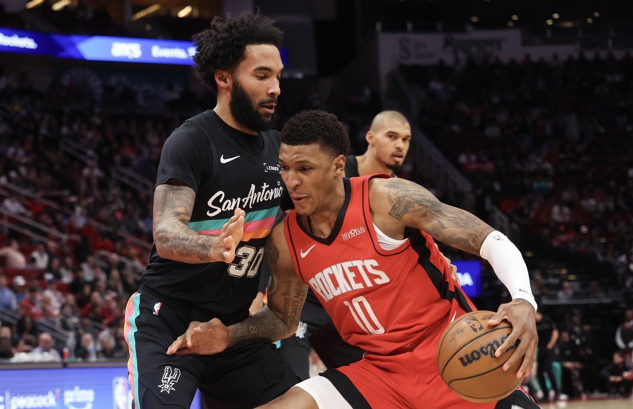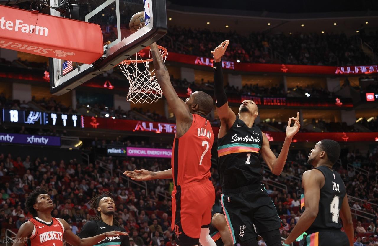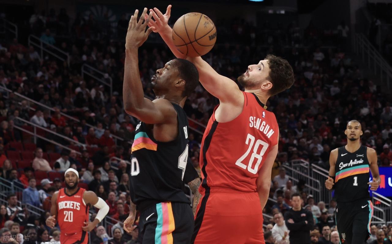 末节初段,马刺外线三分连续打铁,火箭连得4分以后,马刺暂停。但暂停以后,马刺进攻依旧哑火,谢泼德三分命中又完成抢断,电风扇篮下补篮,火箭一波9-0追到1分。但此后双方一顿打铁失误,哈珀上篮终于止血,然后双方又是一顿失误,马刺重新领先到了5分,谢泼德挺身而出,一人连得8分!帮助火箭反超比分,两队争夺白热化,文班一个不进,马刺疯狂打铁,申京勾手以后领先到了4分。谢泼德和阿门的罚球杀死比赛。