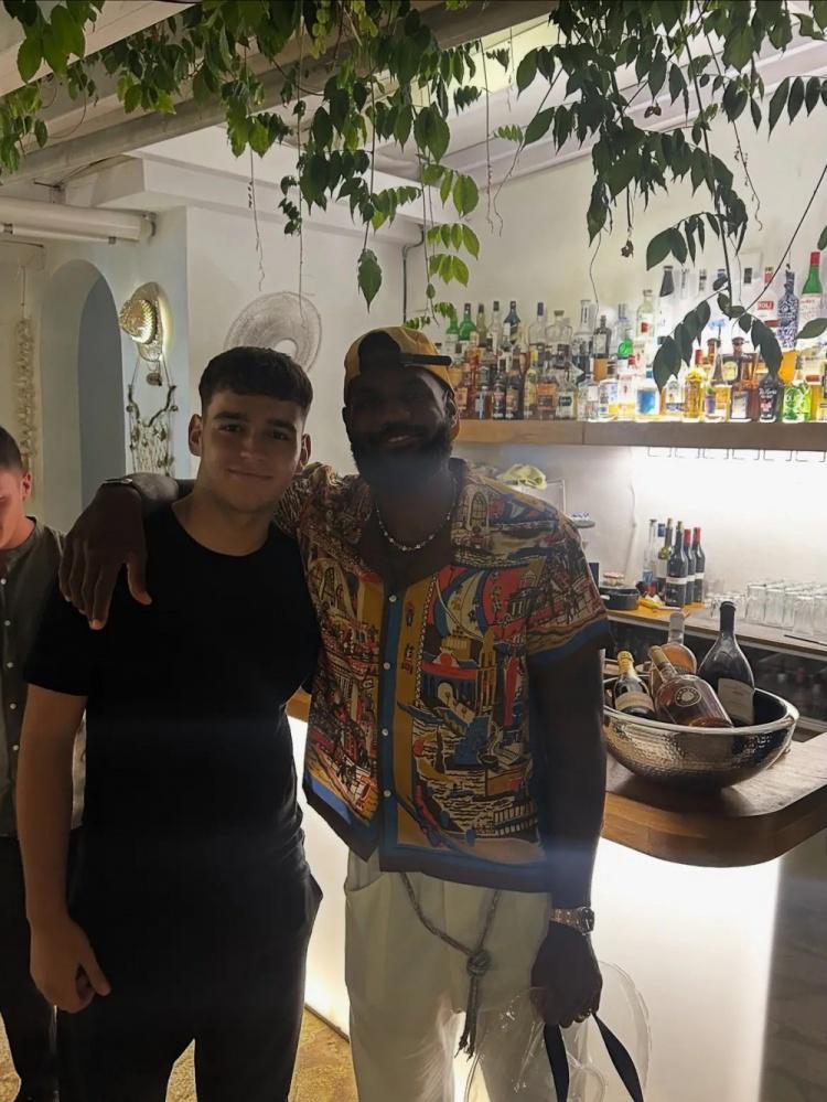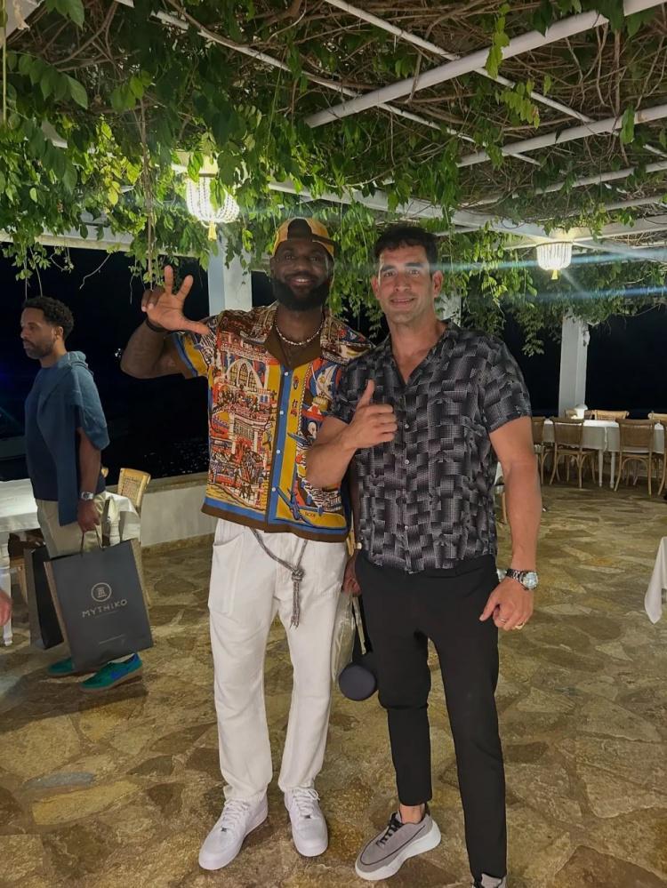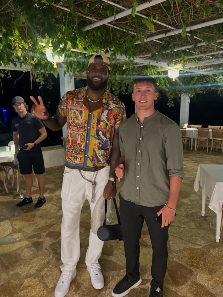 开赛前的惬意时光!詹姆斯现身希腊科孚岛度假 与当地球迷合影