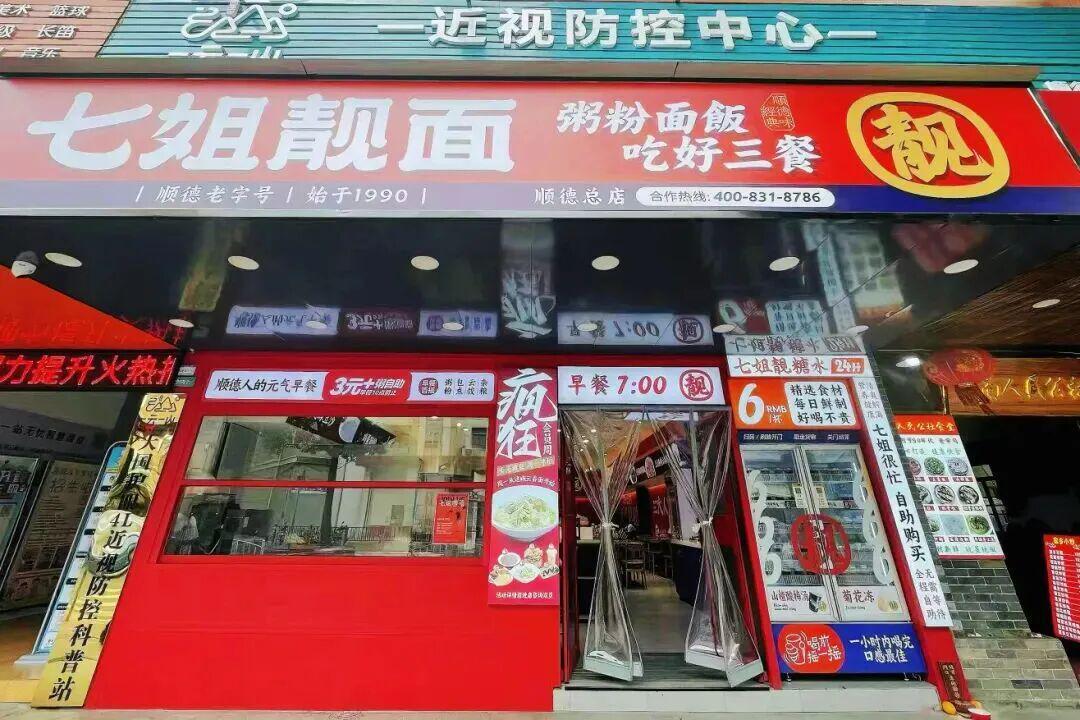 七姐靓面是顺德容桂的老字号面店,其前身是容桂七姐面店,最初在工业路经营,以传统云吞面闻名。从1990年至今,老板用一根竹竿压出三代顺德人的味觉记忆,曾经接受央视《家乡至味》的采访。