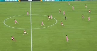 第84分钟,迈阿密左路撞墙配合,梅西下底传中,替补上场的法法·皮科头球攻门被门将希纳维托出。